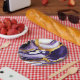 Assiettes En Carton Gras Trendy violet jaune or faux marbre