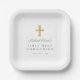 Plaques de papier de première communion personnalisées Navy Blue Script Cross Boy.