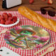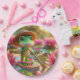 Assiettes En Carton Grenouille sur un tonneau dans un étang
