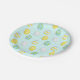 Happy Easter paper plates decorated with egg pattern on blue background