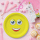 Ces assiettes de fête en papier présentent un design émoticônes heureux.