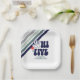 Salut Cinq ! Style rétro Plaques de fête d'anniversaire avec rayures bleues rétro.