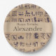 Cette assiette de fête personnalisée est décorée sur le thème de l'art égyptien ancien. Une série d'hiéroglyphes égyptiens sont imprimés sur un papier parchemin arrière - plan. Un exemple de message et de nom Joyeux pour l'anniversaire sont imprimés au centre sur un beige sablonneux assorti.