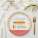 Ce "Hot Dog" simple et moderne ! " La plaque de papier d'anniversaire comporte un hot dog, des bouteilles de ketchup et de moutarde sur un arrière - plan blanc encadré de bandes diagonales rouges et jaunes. L'envers est orné d'un arrière - plan jaune moutarde. Personnalisez-vous pour répondre à vos besoins. Vous pouvez trouver d'autres produits correspondants dans mon magasin.