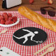 Une icône de joueur de squash en blanc sur un arrière - plan noir. Ce design semble vraiment efficace sur ces Plaques de Papier