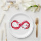 Infinity symbole of continuous stream of red pouring into glass glass glass on white background.
