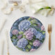 Des grappes de fleurs d'hydrangée vibrantes dans les tons bleu et violet avec des feuilles verts sur un arrière - plan doux et muet