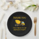 Plaques en papier "merci" pour la fête d'anniversaire du camion mélangeur de ciment jaune et noir. Le texte dit : "Merci d'être venu à ma fête d'anniversaire"