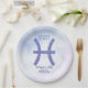Cette jolie plaque de papier de fête d'anniversaire Pisces violet et lavande présente votre signe astrologique du Zodiac dans une belle étincelle comme les constellations. Customisez ce joli décor avec votre nom en écriture cursive pour quelqu'un qui a un anniversaire fin février ou début mars.