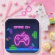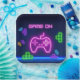 Jeu sur la plaque de papier du joueur vidéo néon rose, vert, bleu, violet.