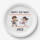 Jiu Jitsu Champ Anniversaire Plaques de papier fête. Notre champion du jiu jitsu a 7 ans. Rejoignez-nous pour une fête d'anniversaire remplie d'action à la salle de gym jiu jitsu pour pizza, jeux et des tonnes de plaisir. Cette plaque en papier présente deux adorables personnages de dessins animés, parfaits pour un enfant qui aime les arts martiaux. Préparez-vous à une fête de knockout remplie d'excitation et de rire.
