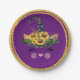 Glitterie or et mauve accents pour cette plaque magique et méowgique d'halloween kitty papeterie. Un chaton sorcier habillé d'un casquette bleu foncé aux accents d'or et de tournesols.