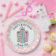 Assiettes En Carton Joyeuse fille rose et verte à la menthe