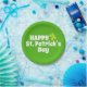 Joyeux St Patrick`s day Plaques de fête Shamrock vert. Le texte du jour de St Patrick avec un shamrock chanceux vert sur un arrière - plan vert vif.