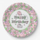 Assiettes En Carton Joyeux anniversaire rose et vert