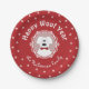 Fêtes festives et festives avec charme grâce à nos assiettes personnalisables en papier. Orné d'un mignon caniche dessiné à la main dans un cadre vintage contre un arrière - plan rouge vif, parsemé de neige empreinte de patte, et prêt pour votre touche Zazzle personnalisée. Idéal pour les amateurs de chiens et ceux qui recherchent une touche de lucidité dans leurs festivités de Noël ou de Nouvel An 🐾 🎄 🍽️.