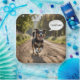 Un mignon chien courant sur une route de terre avec une bulle de discours qui dit "I Smell Cake.