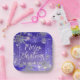 Design unique personnalisé de plaque de papier de Noël avec des flocons de neige, des étincelles et des lumières sur un arrière - plan de dégradé violet à bleu. Le texte est entièrement personnalisable. Pour le modifier, utilisez l'option Personnaliser. Pour d'autres modifications, telles que les modifications apportées à la police, à la couleur de police ou à la disposition du texte, utilisez l'option Modifier la conception de l'outil.