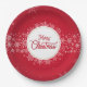 Joyeux Noël Snowflakes Red Festive Paper Party Plaques avec des flocons blancs sur un arrière - plan rouge avec le texte "Joyeux Noël" dans le script de calligraphie moderne. Conçu par ©Evco Holidays www.zazzle.com/store/evcoholidays