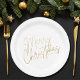 Joyeux texte de Noël en lettres chic fantaisie en faux feuille d'or est présenté sur des plaques de papier blanc de vacances en deux tailles. CORRESPONDRE des articles dans notre magasin.