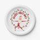 Plats en papier Merry Vibes seulement amusants et festifs, avec une illustration de Père Noël faisant une pause yoga entourée de lumières de Noël.