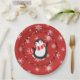 Joyeux Pingouin de Noël Fête Plaques en papier de fête avec arrière - plan rouge et flocons blancs