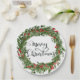 Assiettes En Carton Joyeux Noël Script Red Holly Feuille Wreath