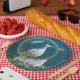Ces plaques en papier présentent une version amusante d'une mouette reposant sur une plage du Connecticut.