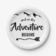 L'Aventure Commence Par Une Plaque En Papier Tendance. Notre montagne faite à la main avec des polices modernes et notre flèche faite à la main entourent la citation positive "et ainsi l'aventure commence". Vous pouvez customiser la couleur arrière - plan.