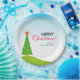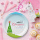 La plaque en papier Le Sapin présente un arbre de Noël vert mignon et bien décoré sur une colline et une étoile rouge brillante au sommet. Un sapin est le sapin de Noël français. © Matin 6