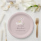 Adorable lama de bébé blanc avec des fleurs roses sur ces plaques de papier pour la fête. Ils correspondent à notre invitation. Consultez notre collection correspondante de produits de fête et de produits pour bébés.