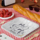 Mr & Mrs dans une police de caractères noir avec un toast de champagne sur damas satiné blanc. Le nom et la date du mariage sont modifiables.