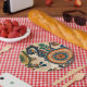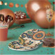 Plaques Abstraites en mandala floral en orange, bleu, vert et ivoire.