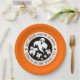 Cette plaque de papier fête d'Halloween en orange, noir et blanc présente un ornement fantôme et "Mange, bois et aie peur" lettrage (peut être changé à tout message que tu veux).
