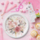 Aquarelle rose florale avec feuilles de feuillage doré et un cercle géométrique d'alcool rose. Les invitations correspondantes et les fournitures de fête sont disponibles dans cette suite de collecte.