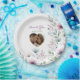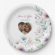 Belles assiettes en papier personnalisées pour le dîner de mariage. Une élégante aquarelle de fleurs prune pourpre avec un feuillage et un design floral vert sauge et bleu poussiéreux. Ajoutez vos noms et photo sur ces serviettes dans la zone de personnalisation. Celles-ci sont belles pour un dîner de réception de mariage ou pour une douche de mariée ou une soirée d'enterrement de vie de jeune fille.