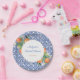 Oranges peintes à la main sur un motif de fond basé sur un carreau vintage bleu et blanc. Si vous préférez le cercle central avec un bord simple (plutôt que festonné), cette option est disponible. Sous les boîtes de personnalisation du texte, "cliquez pour personnaliser davantage", puis accédez à la zone "calques" et affichez "ovale" et masquez le calque de cercle festonné.