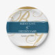 Assiettes En Carton Mariage de monogramme or Blue Elegant