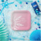 Personnalisez la fête Pink Snowflake Hiver Papier de mariage jetable Plaques avec les noms de la date de la mariée, du marié et de la cérémonie de mariage. Ces élégantes plaques de papier mariage d'hiver personnalisées présentent un design complexe de flocon blanc avec un arrière - plan à dégradé rose. Convient pour une fête d'hiver de décembre, janvier ou février, une douche nuptiale ou un thème mariage.