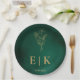 Assiettes En Carton Mariage Fleur sauvage Emerald Green & Gold Monogra