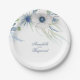 Anémones, chardon, verdure d'eucalyptus - mariage floral bleu poussiéreux / assiettes en papier pour fête spéciale d'été en plein air