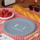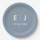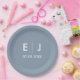 Assiettes En Carton Mariage monogramme bleu et blanc Dusty