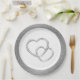Plaque de papier de fête de mariage montrée dans une fausse parties scintillant argentée autour de la jante avec une conception d'impression de deux coeurs au centre. Montré en 9 po de taille. Vendu en paquet de huit. Customisez cet objet ou achetez tel que conçu.