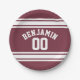 Assiettes En Carton Maroon and White Jersey Stripes Nom personnalisé N
