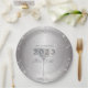 Célébrez votre fête de la Saint-Sylvestre avec ces élégantes plaques de papier brillant argent métallique avec typographie de parties scintillant et verre martini.
