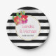 Assiettes En Carton Moderne, aquarelle fleur & rayures mariage florale