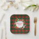 Monogram (Personalized) - Merry Christmas and Happy New Year! XMAS Picture decorated with Christmas magic symbols, Winter Holiday gifts elements pattern, snowman, christmas tree, christmas ball, reindeer, snowflakes, Christmas Sleigh, Christmas stars, and more festive characters on Christmas checkered square Scottish tartan ornaments, Scotland pattern (green & red color). Original trendy graphic design. New Year's Eve party Decoration Crafts & Party Supplies > Party Supplies > Tableware > Paper & Party Plates