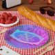Gras rose chaud et bleu vif et violet avec un design scintillant avec un empreinte de léopard et un lotus élégant unis avec un étiquette au milieu où vous pouvez personnaliser votre événement. Un glamour clinquant moderne.