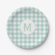 Assiettes En Carton Monogramme En vichy vert simple de base
