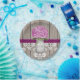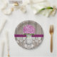 Plutôt rustique modèle monogrammed plaque en papier de mât de mason avec une fleur d'hydrangée violette rougeâtre et une clôture en bois et ancien motif damassé dentelle arrière - plan et ruban cousu de prune. Cette mariage ou nuptiale douche ou couple, fiançailles ou assiette de fête d'anniversaire personnalisée avec les initiales et monogramme du couple heureux ou marié et marié sur la jarre de maçon est parfait pour une campagne, ferme, fête de jardin ou de style baryade occasion spéciale ou célébration. Conçu par Chrissy H. Studios, LLC. Tous droits réservés.